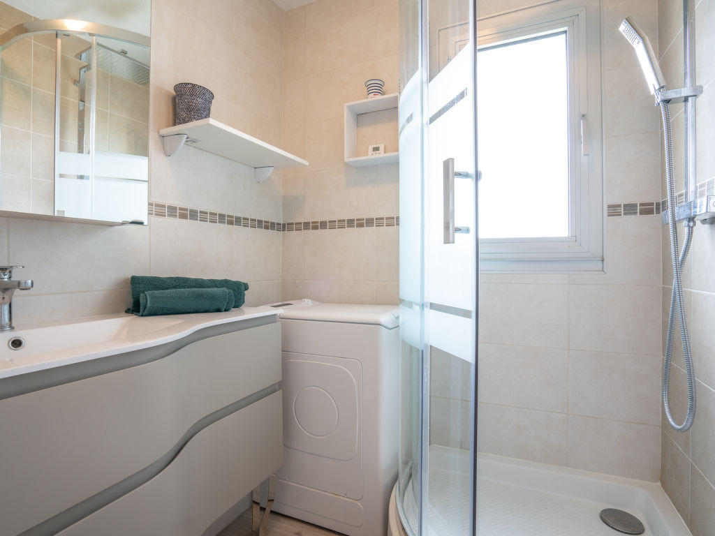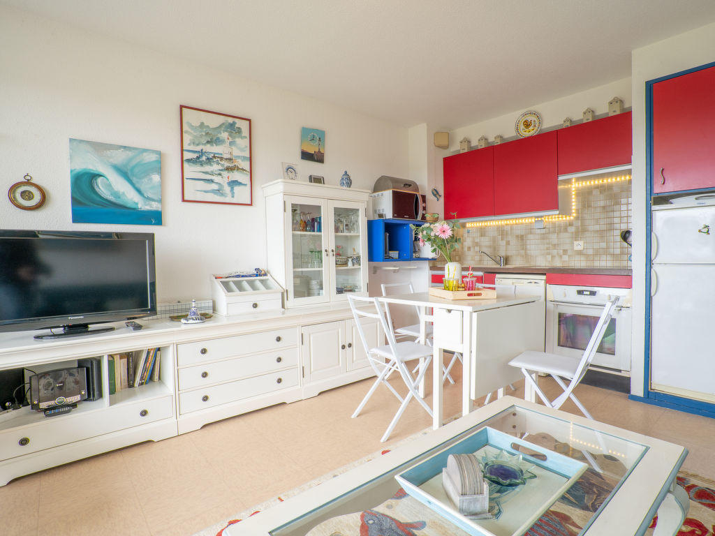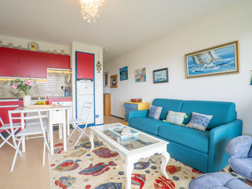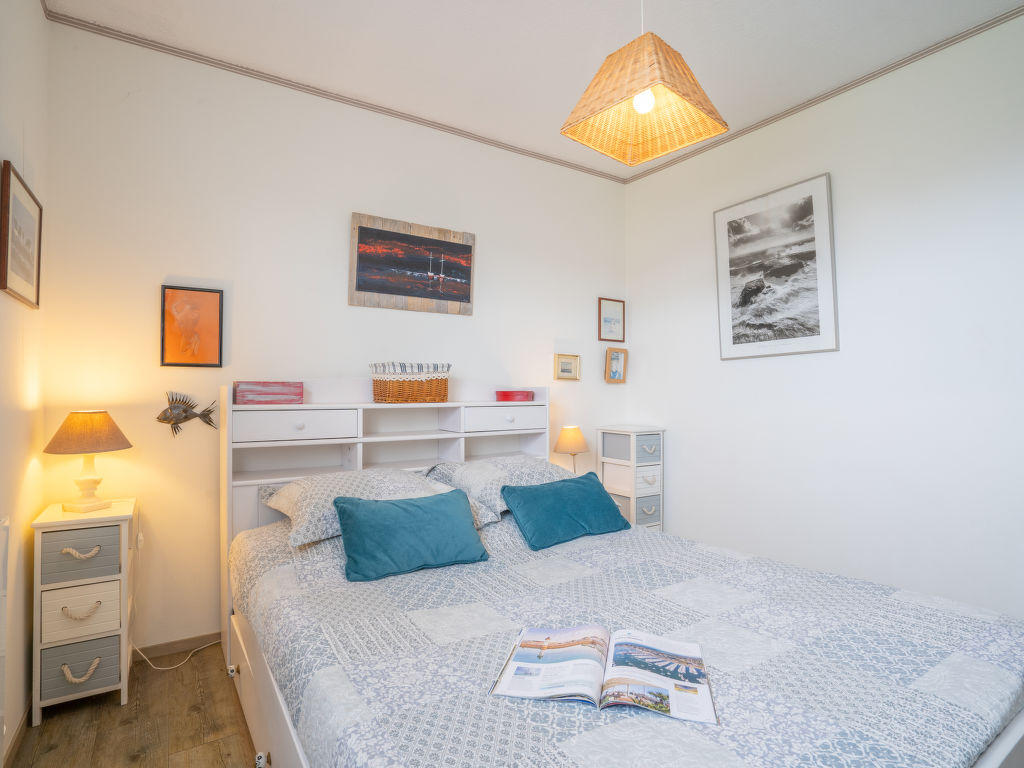Apt 2 pièces 38 m2 au 2ème étage. Logement idéal pour 2 adultes + 1 enfant. Aménagement simple et agréable: séjour avec 1 divan-lit (140 cm, longueur 190 cm), table pour les repas et TV (écran plat). Sortie sur le balcon. 1 chambre avec 1 grand-lit (1 x 140 cm, longueur 190 cm). Coin cuisine (four, lave-vaisselle, 4 plaques vitrocéramiques, micro-ondes). Salle de bains, WC séparé. Chauffage électrique. Mobilier de balcon, chaises longues. Vue éloignée sur la mer. A disposition: lave-linge. Internet (Connexion WIFI, en sus). Place de parking No 21. Veuillez noter: maximum 1 animal/ chien autorisé. Détecteur de fumée. 56186 000148 C8