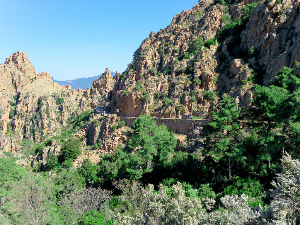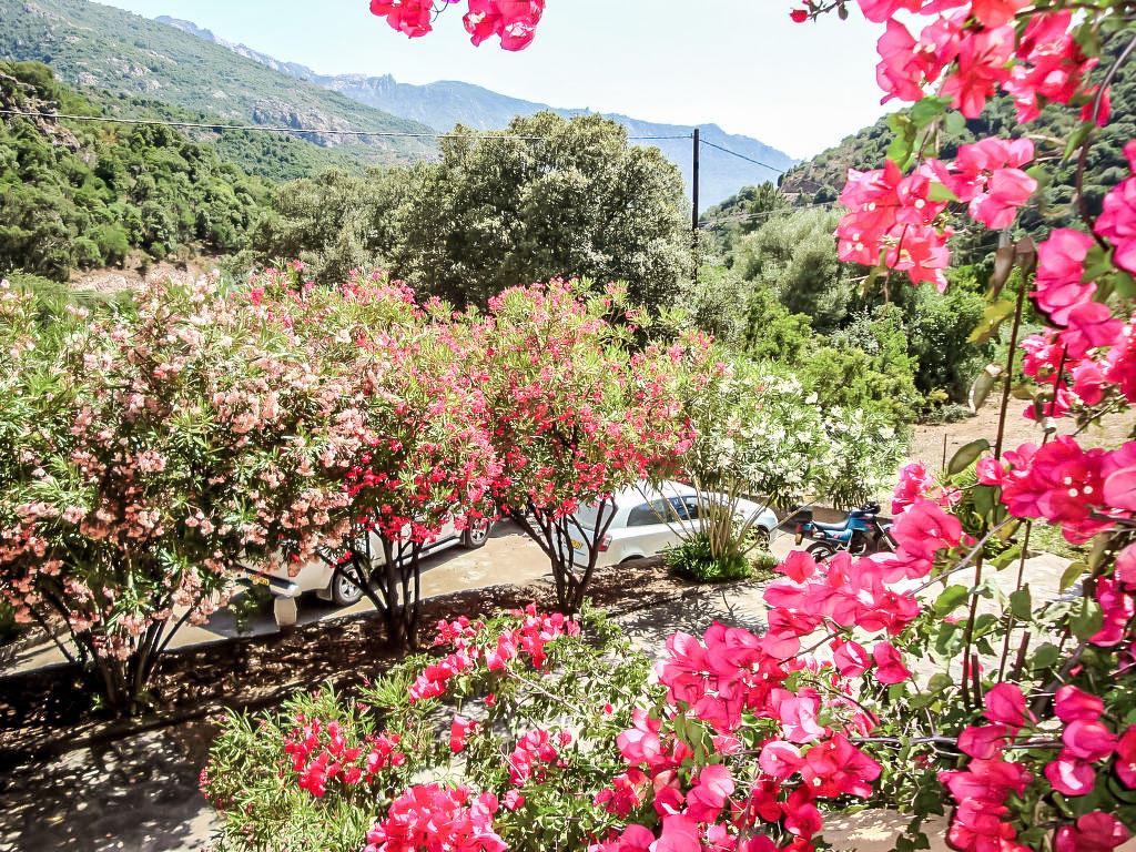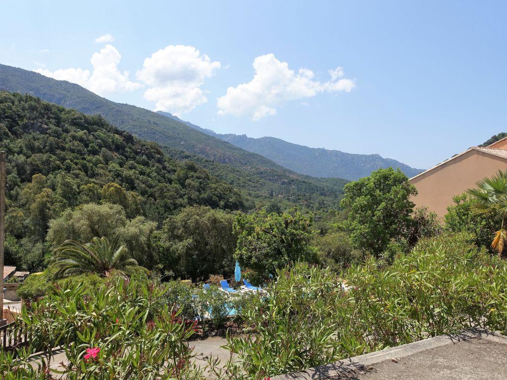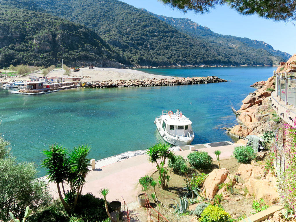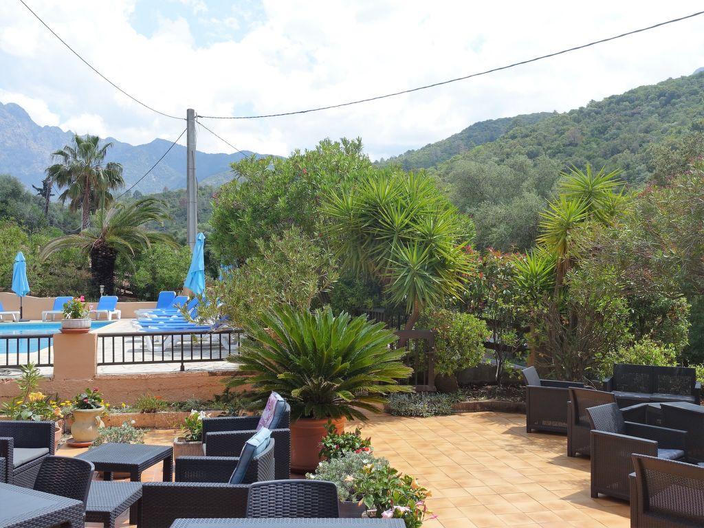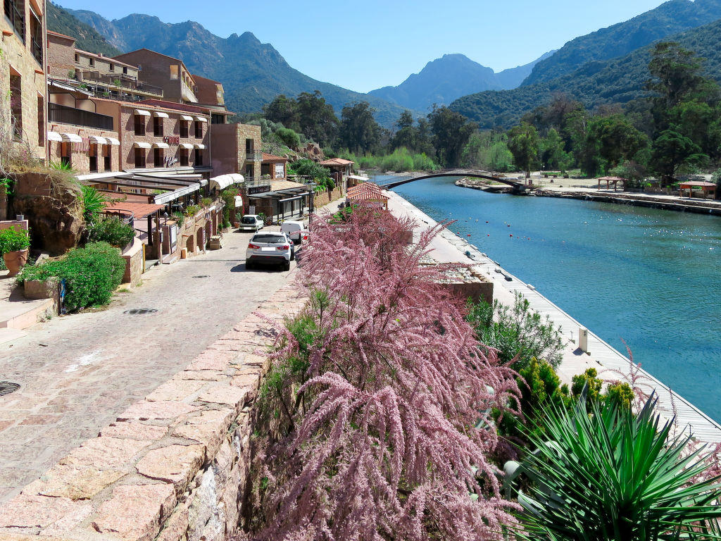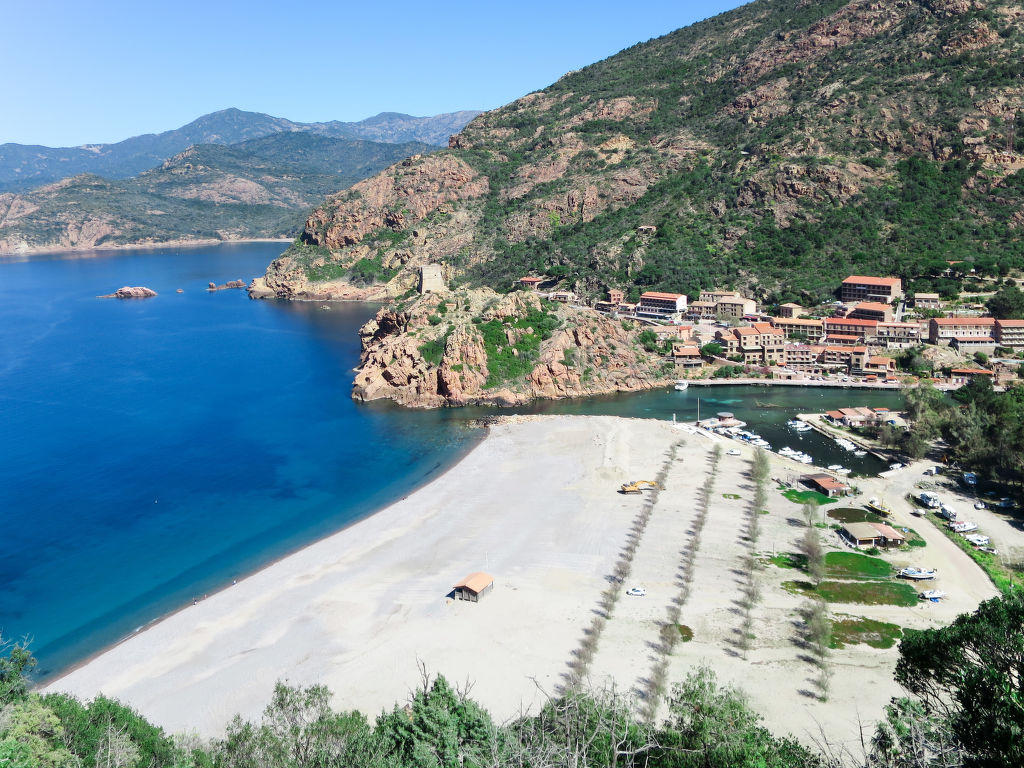 Serriera à 6 km de Porto: Lotissement de vacances « Cabannaccia ». En bordure de la localité Serriera, situation tranquille, à 1.5 km de la mer, à 1.5 km de la plage. En commun: piscine (14 x 8 m, profondeur 100 – 130 cm, disponibilité saisonnière: 01.Jun. – 30.Oct.). Infrastructures de la Maison: réception, bar, café, Connexion WIFI, réduit pour bicyclettes, lave-linge (en commun). Service boulangerie et Petit-déjeuner (en sus). Place de parking. Magasins 6 km, magasin d’alimentation 6 km, restaurant 1.5 km, arrêt de bus « Porto » 5.7 km, plage de galets 1.5 km. Veuillez noter: voiture recommandée. Équipement pour bébés (en sus). La photo ne montre qu’un exemple de location de vacances. D’autres appartements sont également proposés à la location dans cette maison de vacances. Le complexe Cabanaccia regroupe un hôtel ainsi que plusieurs bâtiments (accessibles par des marches) abritant des logements de vacances.