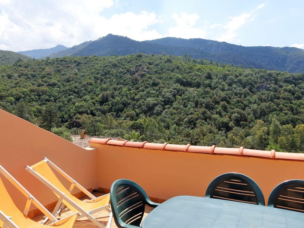 « Residence Cabanaccia 3 Pieces 6 Pers », apt 3 pièces 62 m2 sur 2 niveaux. Séjour/salle à manger avec 1 divan-lit double et TV. 1 chambre avec 1 grand-lit (140 cm, longueur 190 cm), air-conditionné. Coin cuisine (4 plaques de cuisson, lave-vaisselle, micro-ondes). Douche/WC. Sous le toit: (escalier raide) 1 chambre, ouverte avec 2 lits (90 cm, longueur 190 cm), air-conditionné. Chauffage électrique. Terrasse 15 m2. Meubles de terrasse. A disposition: téléphone. Maximum 1 animal/ chien autorisé. A noter: la chambre à grand lit et la douche/wc sont séparés du séjour/salle à manger par 5 marches. Annonce d’un professionnel (art 155, IV du CGI)