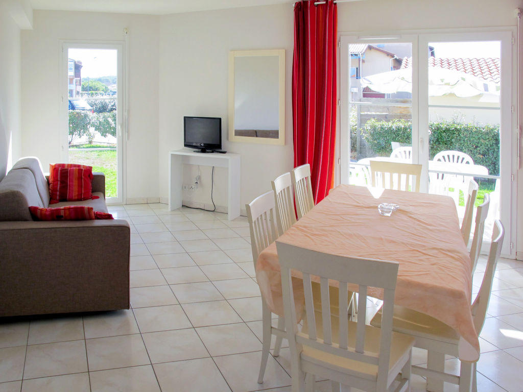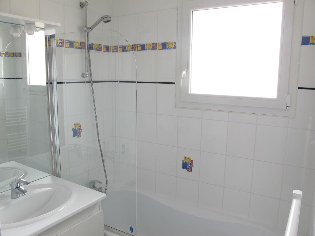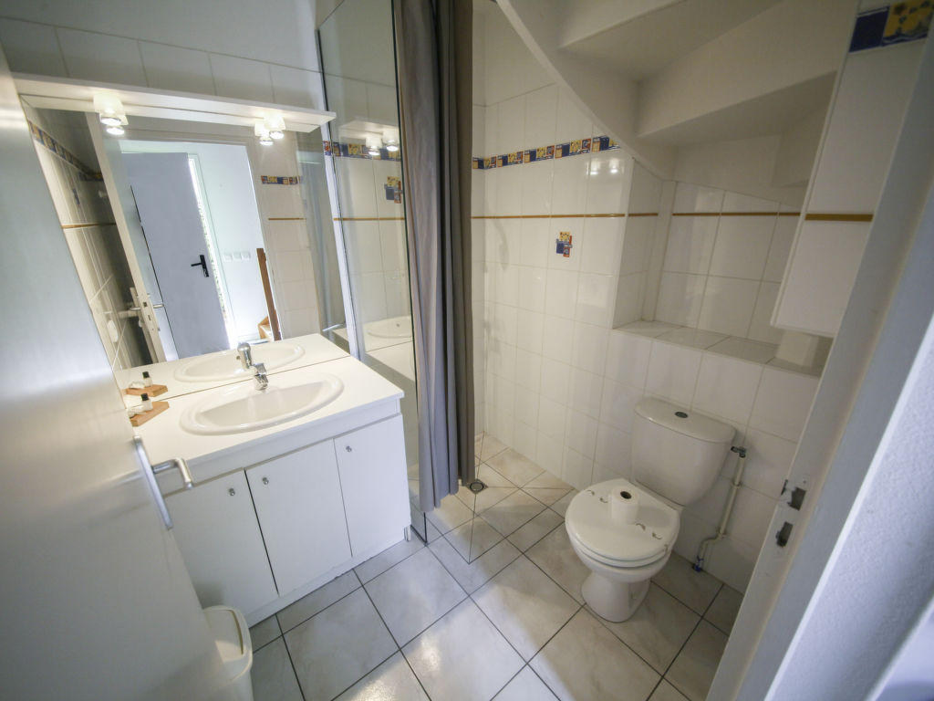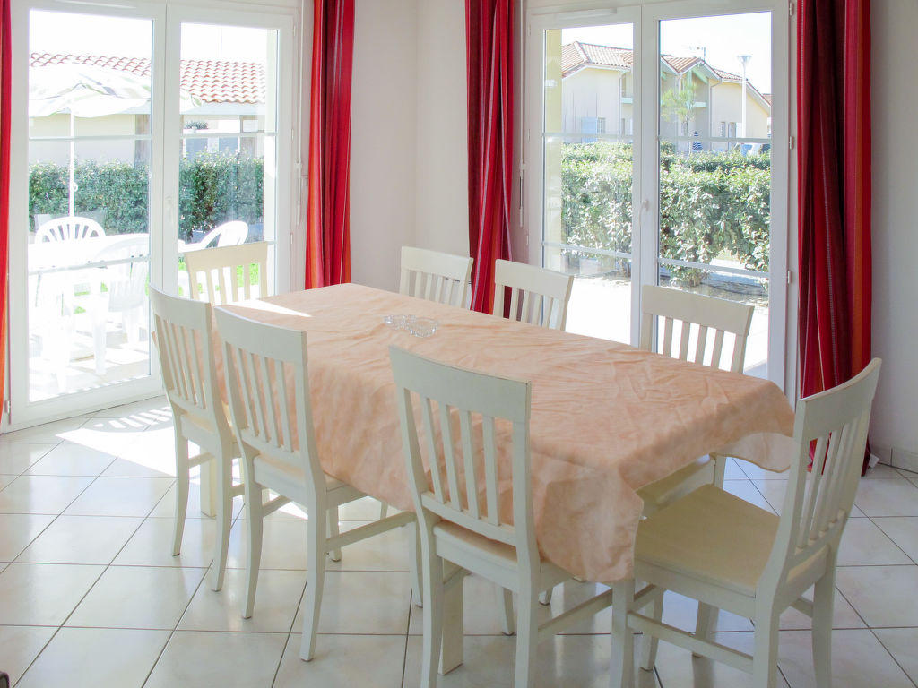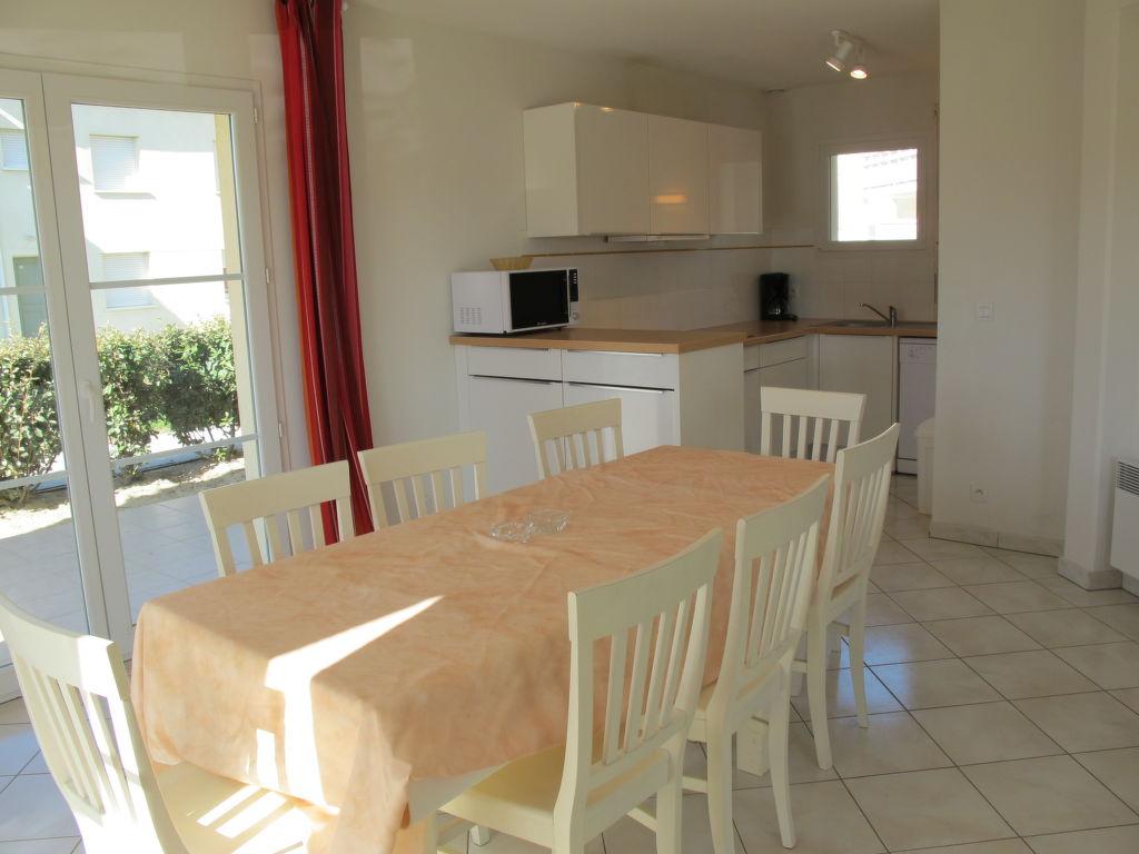 « Résidence Indigo II », maison 5 pièces 90 m2 sur 2 niveaux. Clair, aménagement fonctionnel et plaisant: séjour/salle à manger avec table pour les repas et TV (écran plat). Sortie sur la terrasse. 1 chambre avec 1 grand-lit (140 cm, longueur 190 cm). Sortie sur le jardin. Coin cuisine (lave-vaisselle, 4 plaques vitrocéramiques, grille-pain, bouilloire électrique, micro-ondes, congélateur, cafetière électrique). Douche/WC. À l’étage supérieur: 1 chambre avec 1 grand-lit (140 cm, longueur 190 cm). 1 chambre avec 2 lits (90 cm, longueur 190 cm). Sortie sur le balcon. 1 chambre avec 2 lits (90 cm, longueur 190 cm). Salle de bains, WC séparé. Chauffage électrique. Balcon, terrasse partiellement couverte. Meubles de terrasse. A disposition: lave-linge, fer à repasser, chaise haute pour enfant, lit bébé (en sus). Internet (Connexion WIFI, gratuit). Veuillez noter: maximum 1 animal/ chien autorisé. Détecteur de fumée.