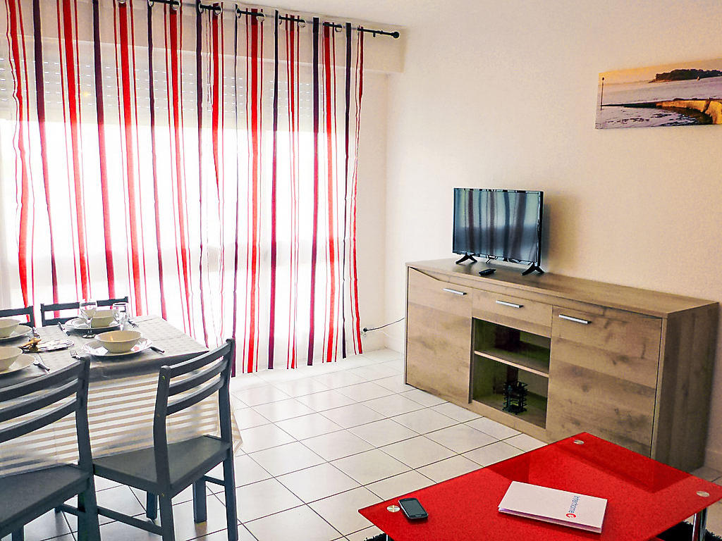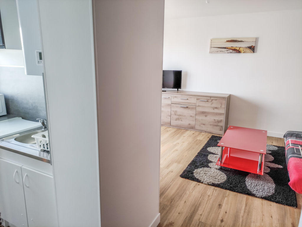 Studio 28 m2 au 2ème étage. Aménagement simple et fonctionnel: séjour/salle à manger avec 1 divan-lit double (1 x 140 cm, longueur 190 cm), TV (écran plat). Sortie sur le balcon. Petite cuisine (4 plaques de cuisson, grille-pain, bouilloire électrique, micro-ondes, cafetière électrique). Douche, WC séparé. Chauffage au gaz. Balcon 3 m2. Mobilier de balcon. A disposition: Internet (Connexion WIFI, en sus). Place de parking No 96. Veuillez noter: logement côté rue. Logement non-fumeur. Maximum 1 animal/ chien de petite taille autorisé. TV seulement FR. Détecteur de fumée. 352880007190A