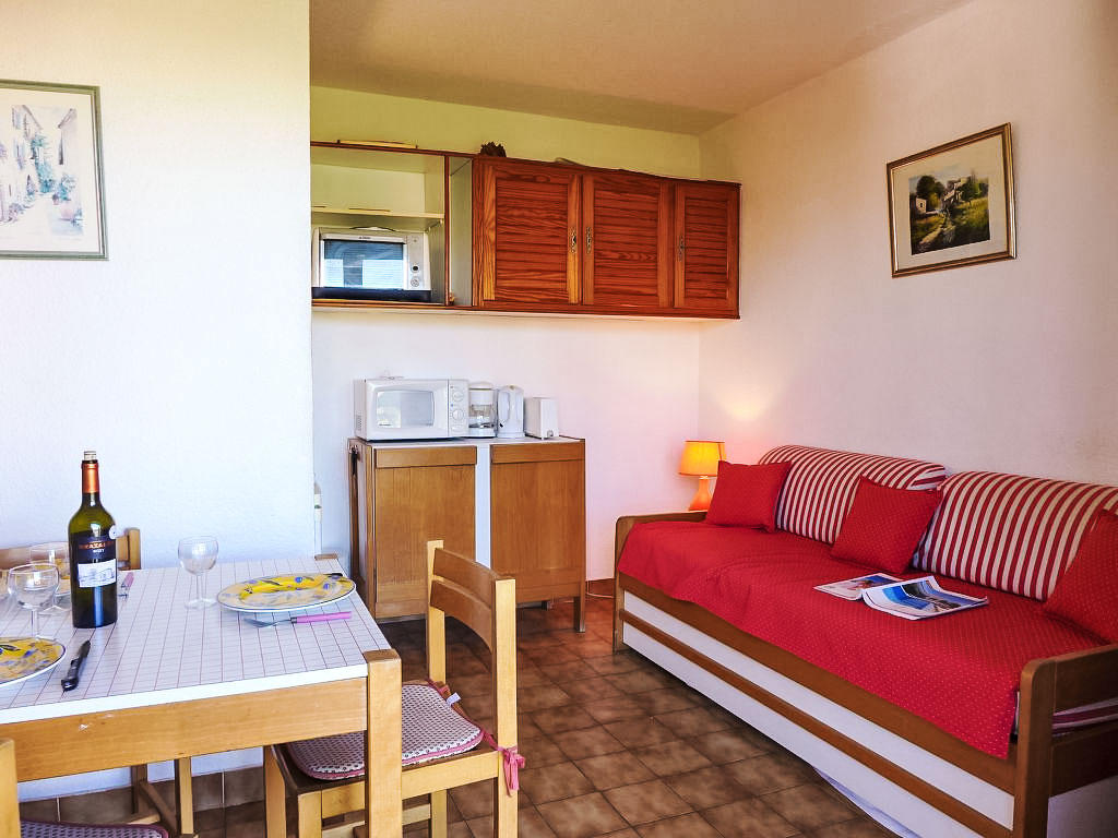Apt 2 pièces 25 m2 au 3ème étage. Aménagement simple et agréable: séjour/salle à manger avec 1 lit gigogne (2 pers. 2 x 80 cm, longueur 190 cm), TV (écran plat). Sortie sur la loggia. 1 petite chambre avec 1 grand-lit (140 cm, longueur 190 cm). Coin cuisine (2 plaques de cuisson, mini-four, grille-pain, bouilloire électrique, micro-ondes, cafetière électrique). Douche/WC. Chauffage électrique. Mobilier de balcon, loggia. A disposition: Internet (Connexion WIFI, en sus). Place de parking No 19. Veuillez noter: logement non-fumeur parking pour 1 petite voiture. Maximum 1 animal/ chien autorisé. Détecteur de fumée. Annonce d’un particulier (art 155, IV du CGI). 83115002993WR