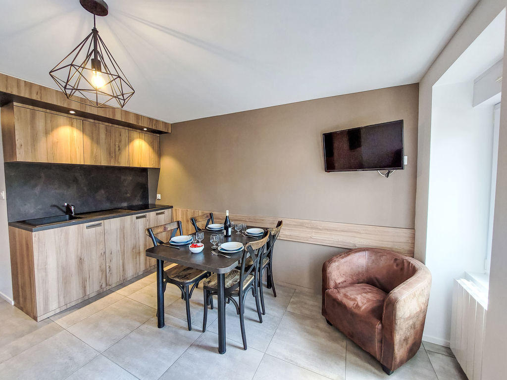 « T3-Résidence La Carquois », maison mitoyenne 3 pièces 45 m2 sur 2 niveaux. Complètement rénovée, aménagement agréable: séjour avec TV. Sortie sur la terrasse. Coin cuisine (lave-vaisselle, 3 plaques à induction, grille-pain, bouilloire électrique, congélateur, cafetière électrique, combiné micro-ondes). Douche/WC. À l’étage supérieur: 1 chambre, mansardée avec 1 grand-lit (160 cm, longueur 200 cm). 1 chambre, mansardée avec 2 lits (90 cm, longueur 190 cm). Chauffage électrique. Terrasse 15 m2. Meubles de terrasse. A disposition: chaise haute pour enfant, lit bébé (en sus). Internet (Connexion WIFI, gratuit). Veuillez noter: maximum 1 animal/ chien autorisé. Détecteur de fumée. Annonce d’un professionnel (art 155, IV du CGI)