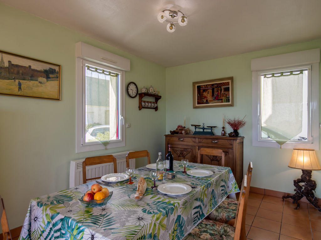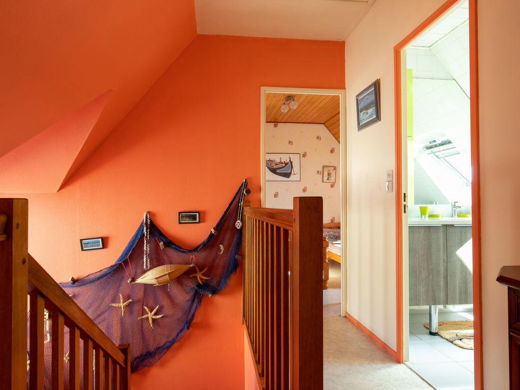 « Tal ar Mor », maison 3 pièces 84 m2 sur 2 niveaux. Aménagement plaisant: séjour/salle à manger avec table pour les repas et TV (satellite). Sortie sur la terrasse. Cuisine (1 plaque de cuisson, four, lave-vaisselle, 3 feux, grille-pain, bouilloire électrique, micro-ondes, congélateur, cafetière électrique, appareil à raclette, service à fondue (fondue au fromage)) avec petite table pour les repas. Sortie sur la terrasse. WC séparé. À l’étage supérieur: 1 chambre, mansardée avec 1 grand-lit (140 cm, longueur 190 cm). 1 chambre, mansardée avec 2 lits (90 cm, longueur 190 cm). Douche/WC. Chauffage électrique. 2 terrasses, situation sud et situation sud-est. Meubles de terrasse, barbecue (portable), chaises longues (4). Vue sur la mer. A disposition: lave-linge, chaise haute pour enfant, lit bébé. Internet (Connexion WIFI, gratuit). Veuillez noter: maison non-fumeur. Maximum 2 animaux/ chiens autorisés. Détecteur de fumée.