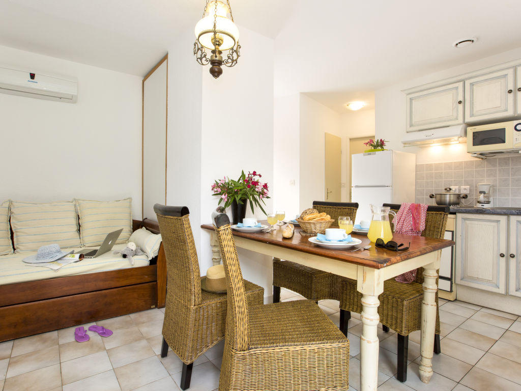 « Villa Stella », maison mitoyenne 2 pièces 41 m2. Logement idéal pour 2 adultes + 2 enfants. Aménagement agréable et de bon goût: séjour/chambre à coucher avec 1 lit gigogne (2 pers. 2 x 90 cm, longueur 190 cm), table pour les repas, TV (satellite), chauffage électrique et air-conditionné. 1 chambre avec 1 grand-lit (160 cm, longueur 200 cm). Coin cuisine (lave-vaisselle, 4 plaques vitrocéramiques, grille-pain, bouilloire électrique, micro-ondes, congélateur, cafetière électrique). Salle de bains, WC séparé. Terrasse, jardinet. Meubles de terrasse, barbecue. Belle vue sur la mer. A disposition: lave-linge, coffre-fort, sèche-cheveux. Internet (Connexion WIFI, en sus). Veuillez noter: adapté(e) aux familles. Maison non-fumeur. Maximum 2 animaux/chiens de petite taille autorisés. Détecteur de fumée. Cette location est un exemple de location / d’appartement. Occupation maximale: 2 adultes et 2 enfants jusqu’à 12 ans. L’attribution de la location s’effectue uniquement lors de l’arrivée. Annonce d’un professionnel (art 155, IV du CGI)