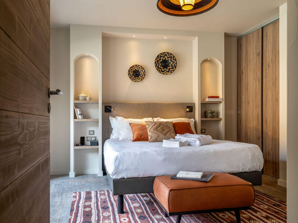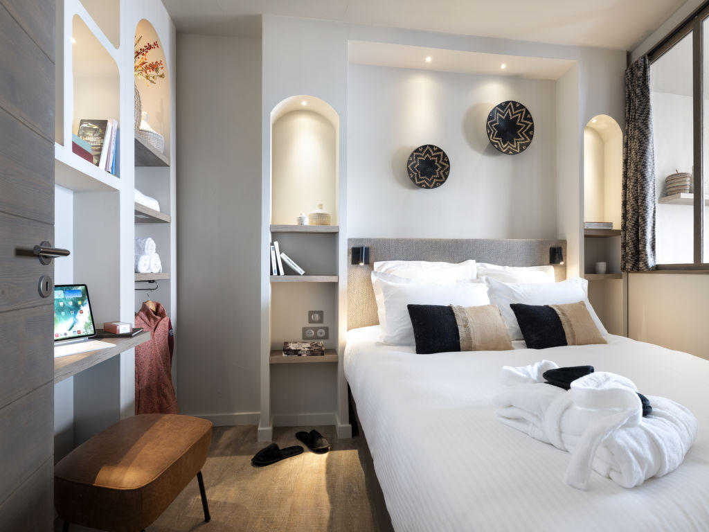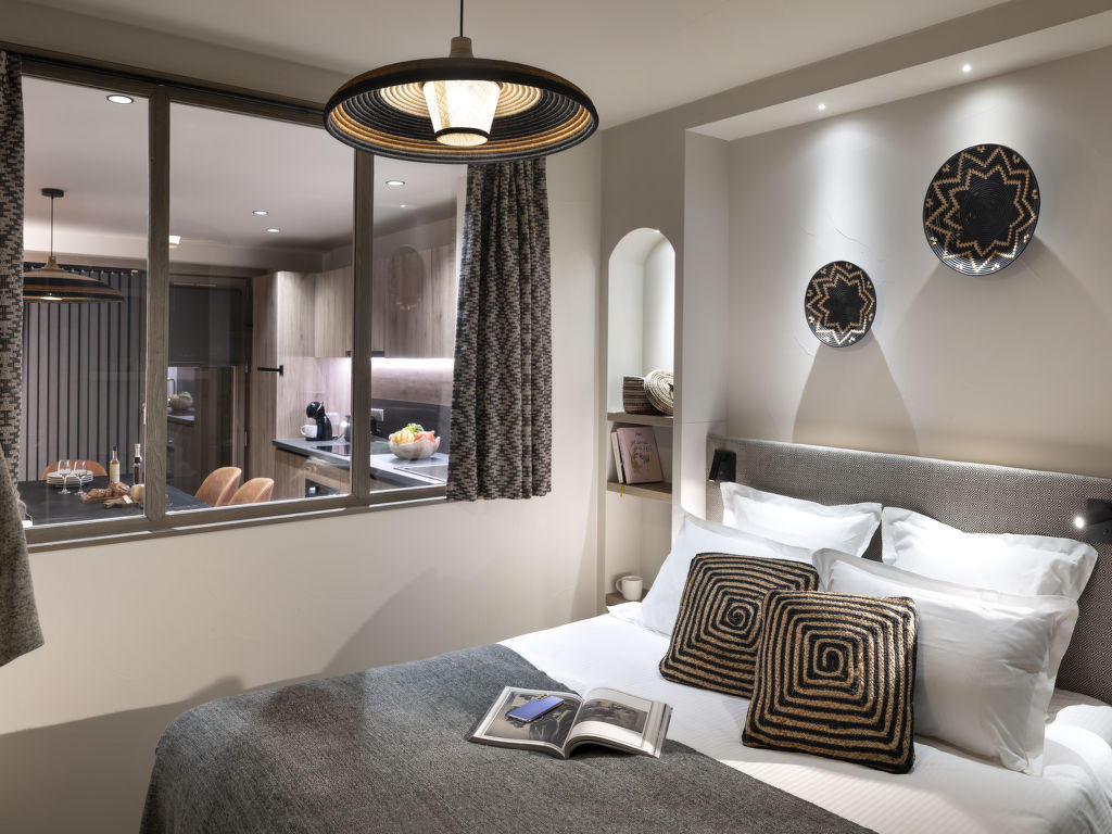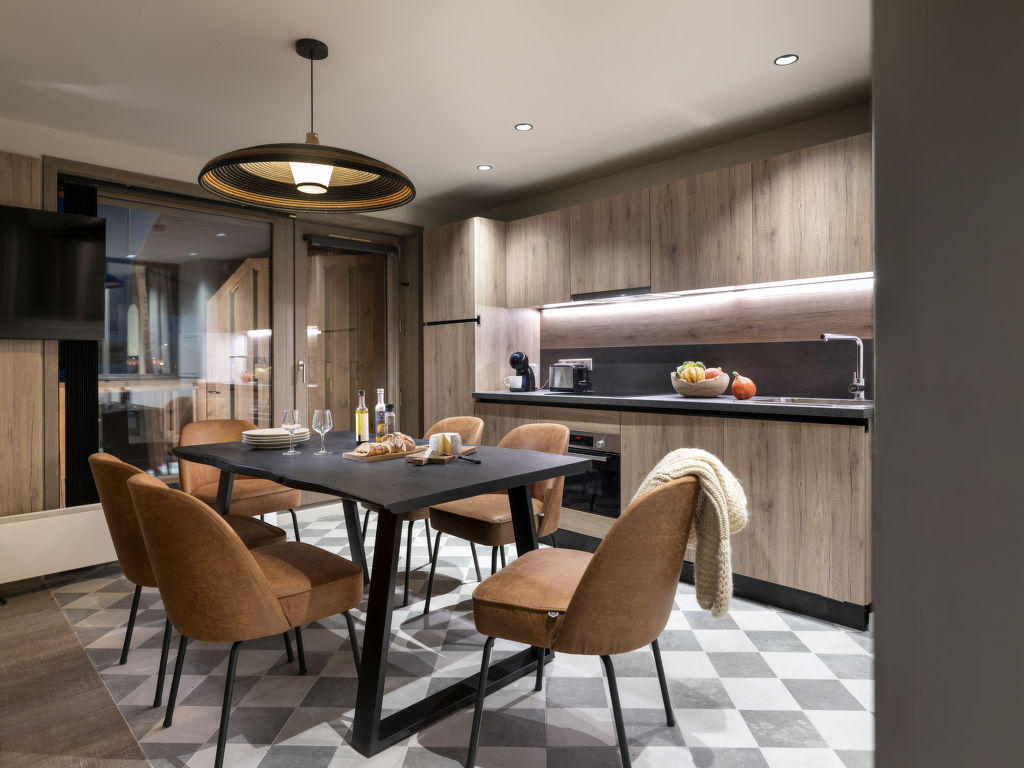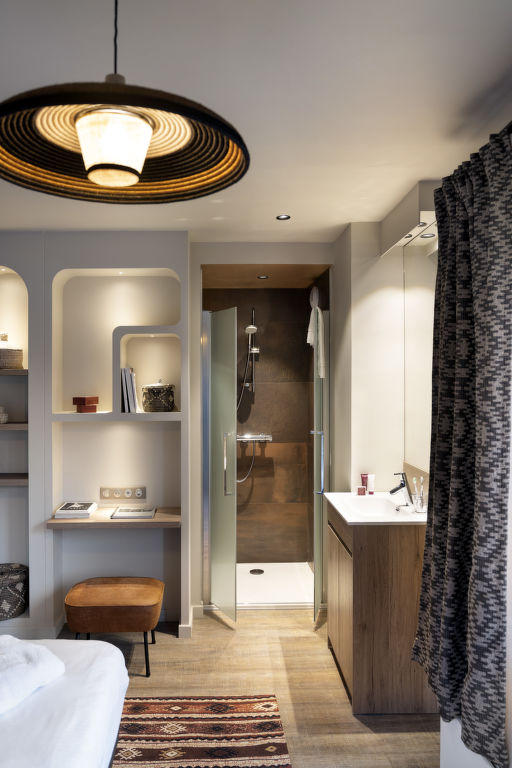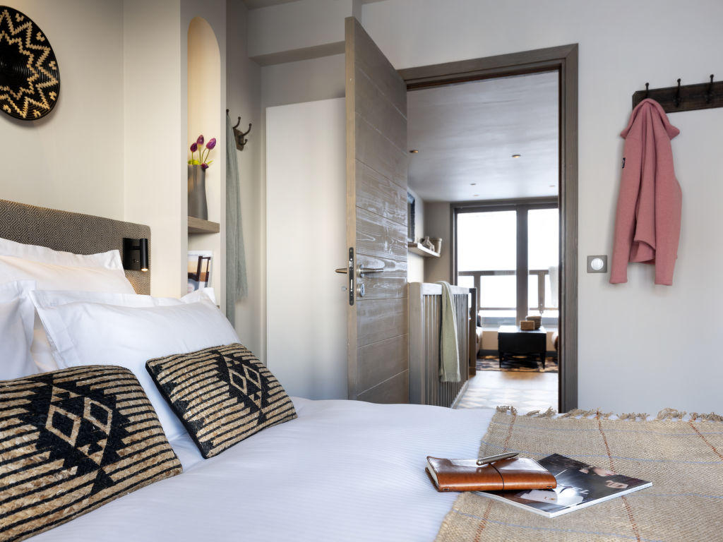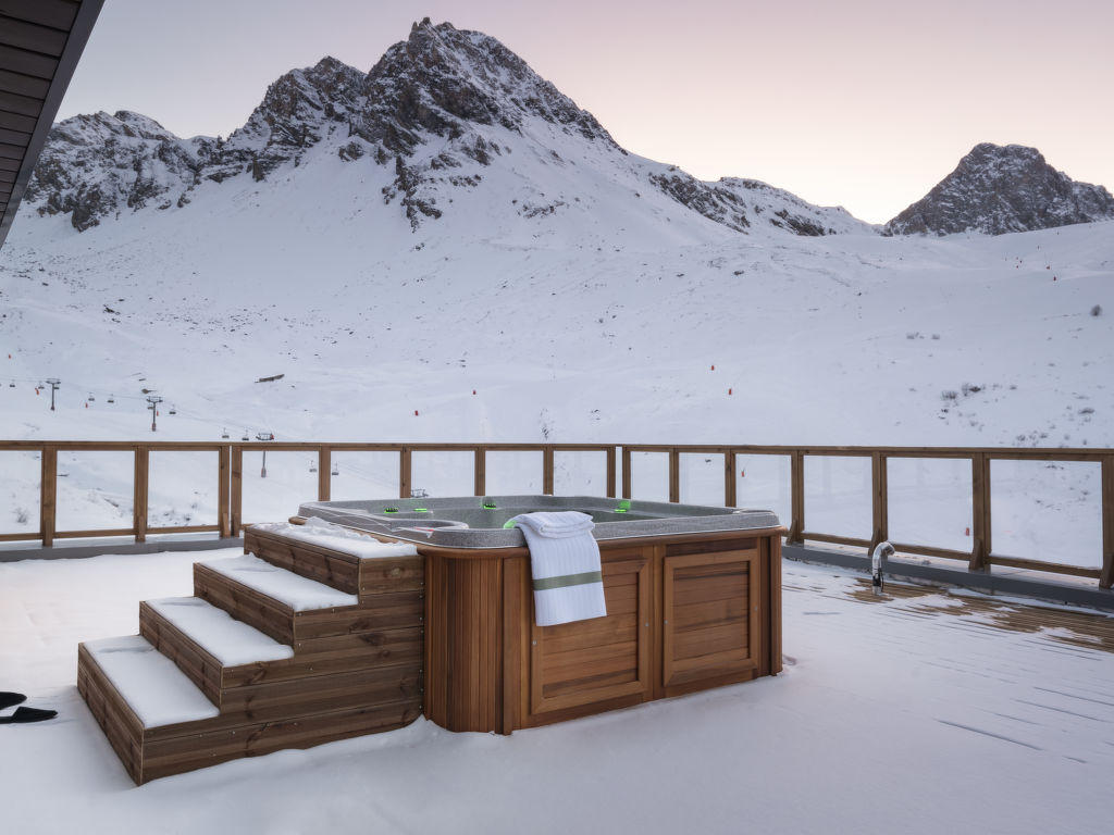 Tignes Val Claret: Résidence « Ynycio », année de construction 2022. 33 appartements dans la résidence. En commun: piscine couverte chauffée. Infrastructures de la résidence: réception, sauna, hammam, chauffage central. Centre à 5 minutes à pieds. Téléphérique 100 m, télésiège, remontées mécaniques 100 m, location de ski 500 m. Attractions à proximité: Funiculaire de la Grande Motte, Télésiège de Bollin. Les domaines skiables de renommée sont facilement accessibles: Alpes 2150 m d’altitude. Veuillez noter: La photo ne montre qu’un exemple de location de vacances. D’autres appartements sont également proposés à la location dans cette maison de vacances. Les locations peuvent également se différencier par leur superficie, la disposition des pièces et leur équipement.