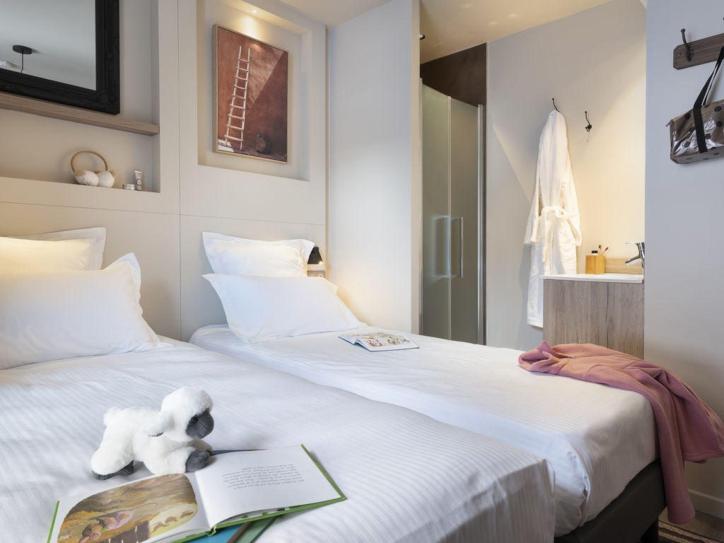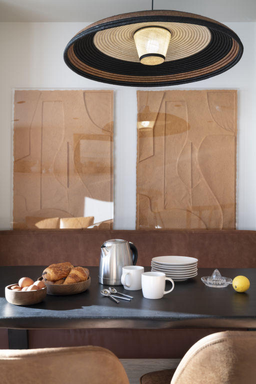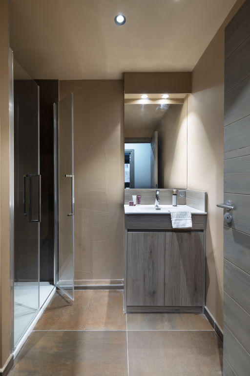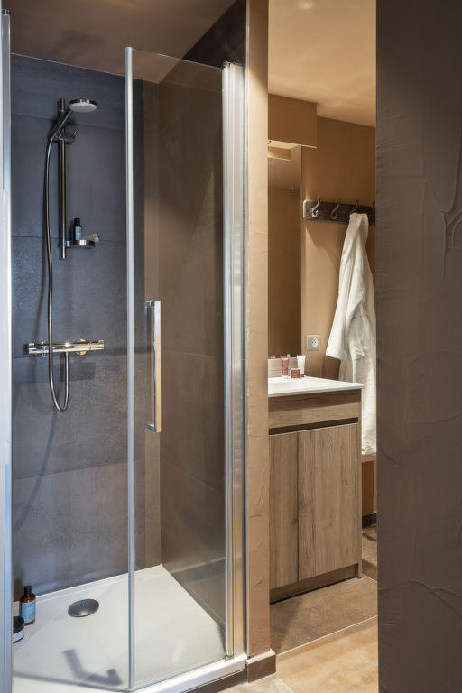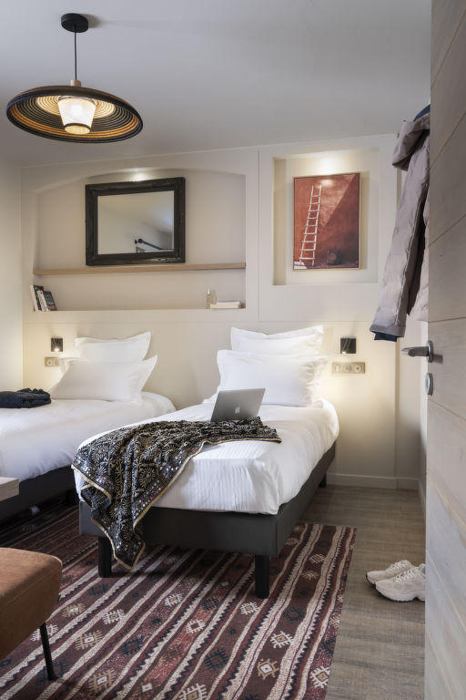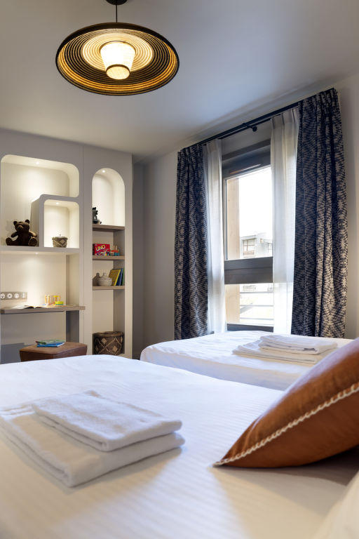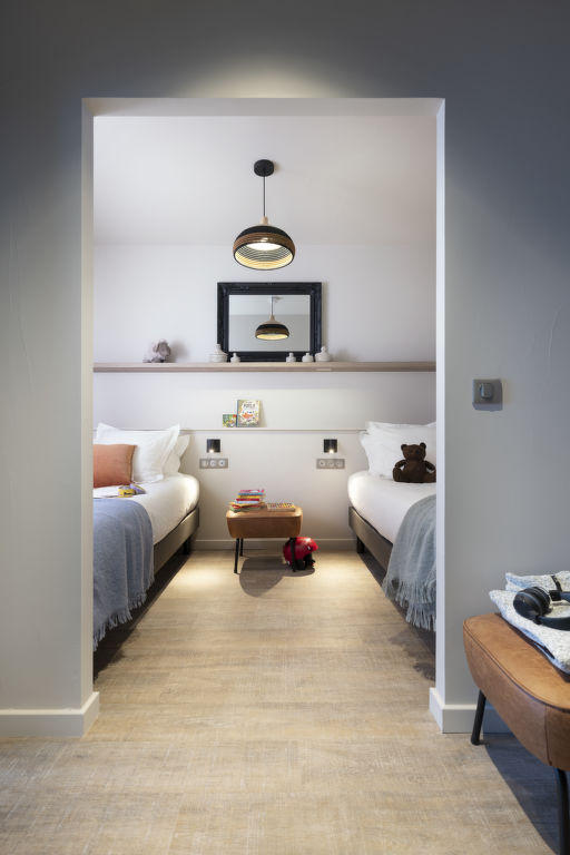Apt 3 pièces 58 m2. Séjour/salle à manger avec TV (écran plat). 1 chambre avec 1 grand-lit et douche. 1 chambre avec 2 couchages. Coin cuisine (lave-vaisselle, 2 plaques vitrocéramiques, grille-pain, bouilloire électrique, cafetière électrique, Capsules pour machine à café (Dolce Gusto) (NON INCLUSES), combiné micro-ondes). Salle de bains, WC séparé. Chauffage électrique. A disposition: sauna, coffre-fort, sèche-cheveux. Internet (Connexion WIFI, gratuit). Maximum 1 animal/ chien autorisé.